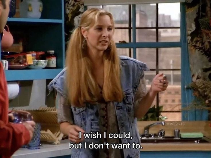 The decisions I’ve made for my daughter prioritize her comfort above mine in all things. We nurse to sleep, we feed on demand, we cuddle for as long as it takes, I am the food and the bedtime routine. It means I am required in a very literal way, especially in the evenings, when social life tends to happen. It means there’s no clean handoff, no interchangeable caregiver slot that can be filled, and it means evenings are not mine. When I leave, her care and comfort come with me and I just can’t bring myself to outsource any part of that.